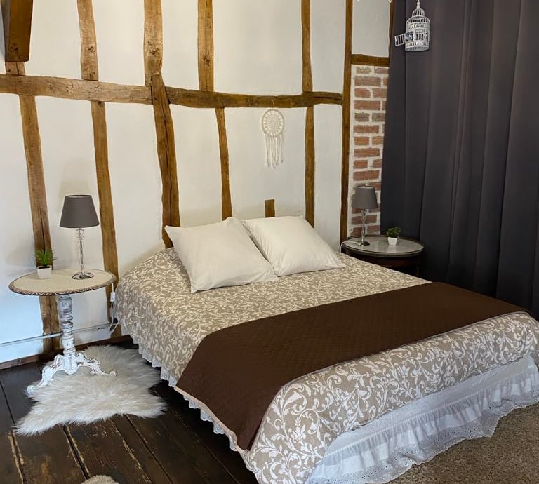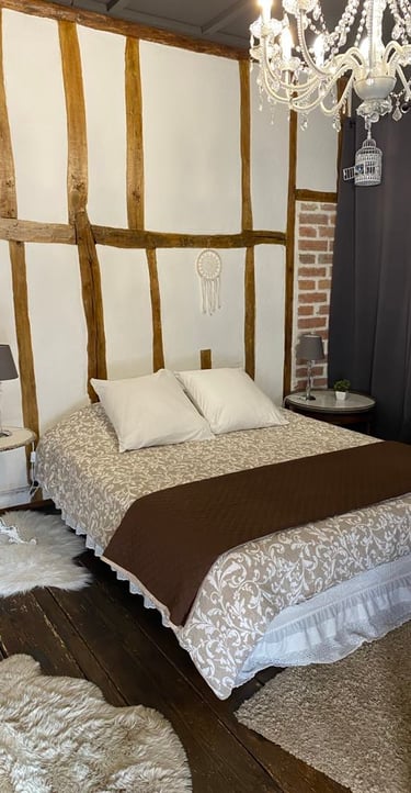 "Chambre très chaleureuse, un très bon accueil des propriétaires et très souriant. Petit déjeuner au top avec beaucoup de choix à notre disposition"